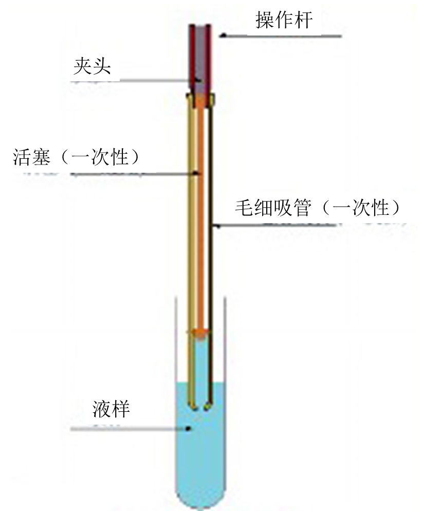移液器的工作原理:活塞通過彈簧的伸縮運動來實現吸液和放液。