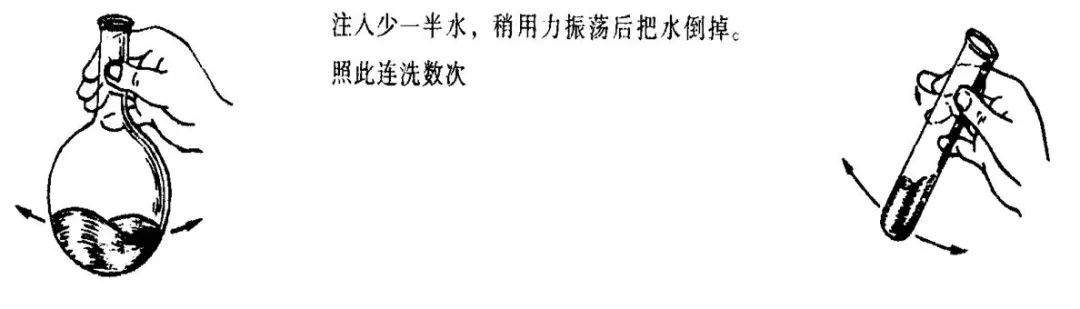 注入少一半水,稍用力振蕩后把水倒掉,照此連洗數次。