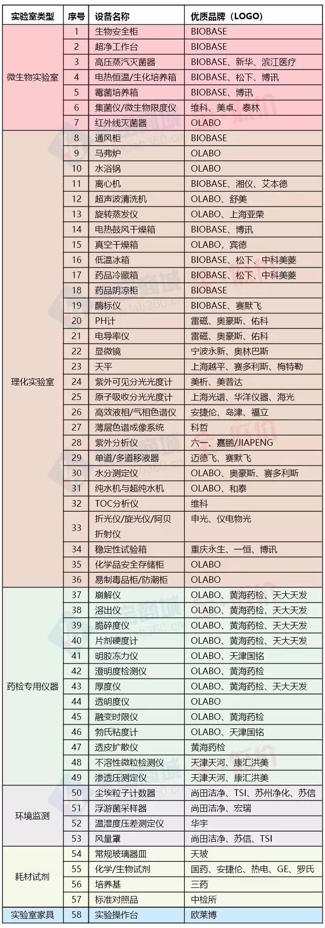 實(shí)驗(yàn)室類(lèi)型主要包括:微生物實(shí)驗(yàn)室、理化實(shí)驗(yàn)室、藥檢專(zhuān)用儀器、環(huán)境監(jiān)測(cè)、藥材試劑、實(shí)驗(yàn)室家具等