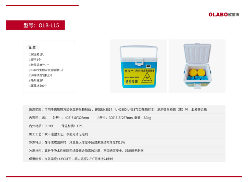 OLABO歐萊博生物安全運輸箱OLB-L15內部信息15升,三罐