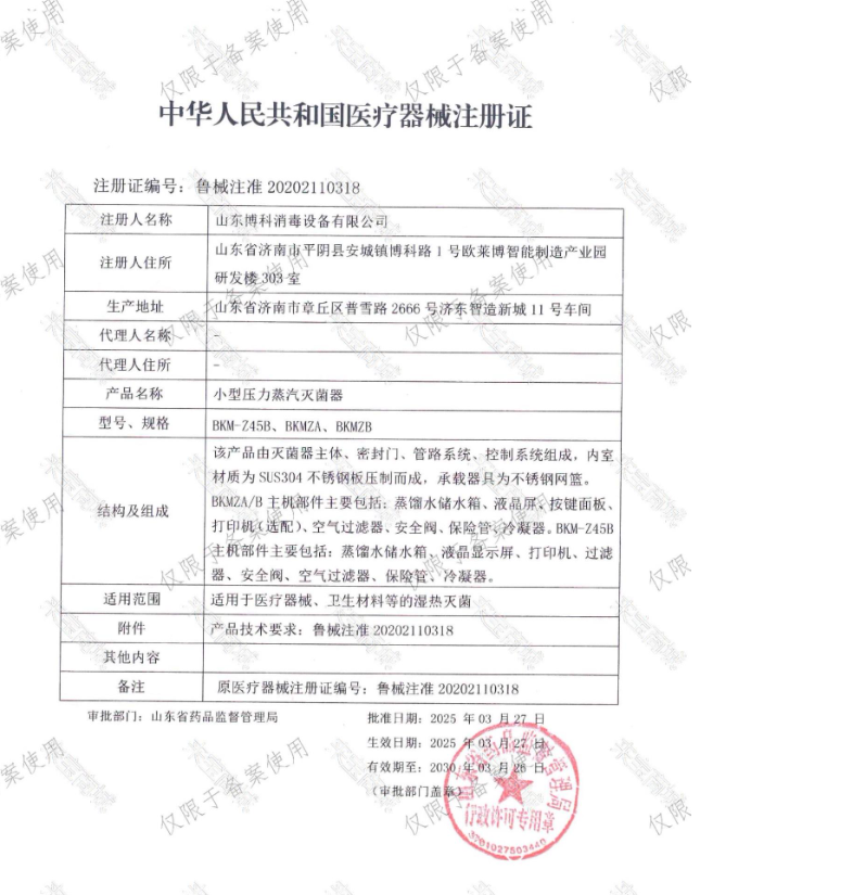 批準(zhǔn)文號(hào):魯械注準(zhǔn)20202110318